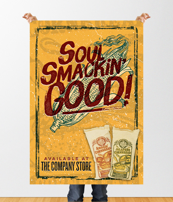This is a poster advertising the sale of the world famous House of Blues cornbread mix.