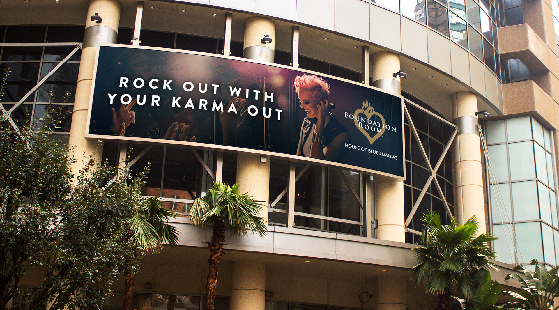 Digital billboard designs for the Foundation Room at House of Blues' Karma Campaign.